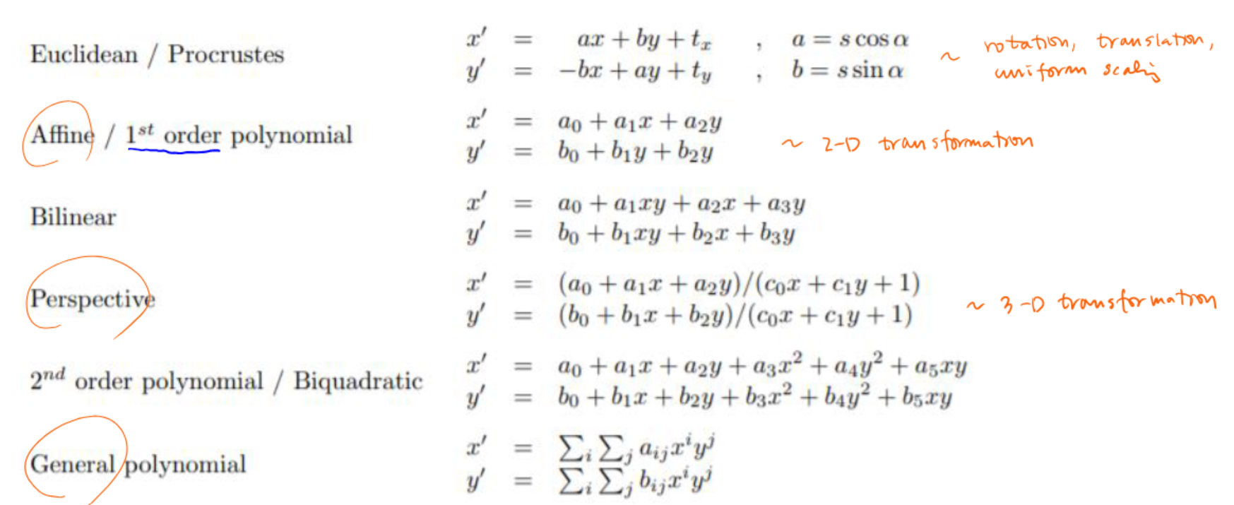 Geometric transformation(기하학적 변환)은 Coordinate transformation(좌표 변환)과 Intensity interpolation(강도 보간)으로 구성된다.