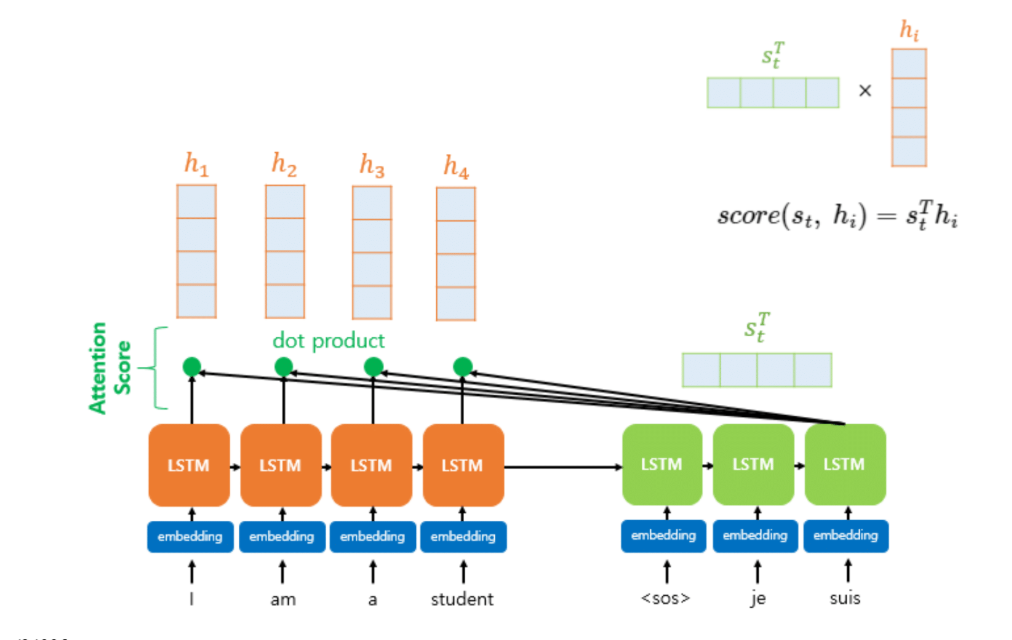 - 디코더 각 시점마다 인코더의 모든 단어 참조