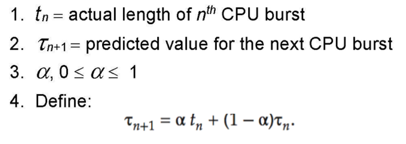 - CPU burst의 길이를 예측해야 함
