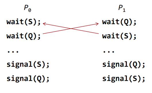 프로세스가 자원을 얻지 못해 다음 처리를 하지 못하는 상태로 ‘교착 상태’라고도 한다.