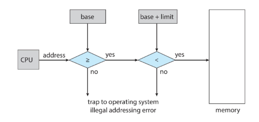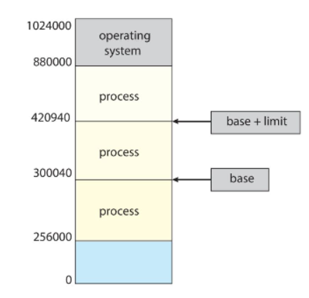 process가 시작하는 메모리 주소를 base, 끝나는 주소를 base+limit로 정하고 이 정보는 각각 레지스터에 담겨있다.