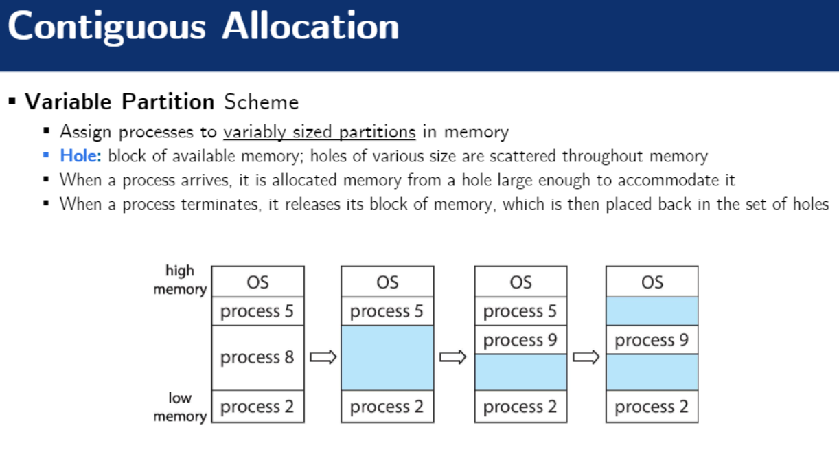 - compile time에서 binding: 컴파일 시점에 프로그램이 실제 어느 물리적 메모리 주소에 위치할지 정한다. 즉 물리적 주소와 논리적 주소가 같다.