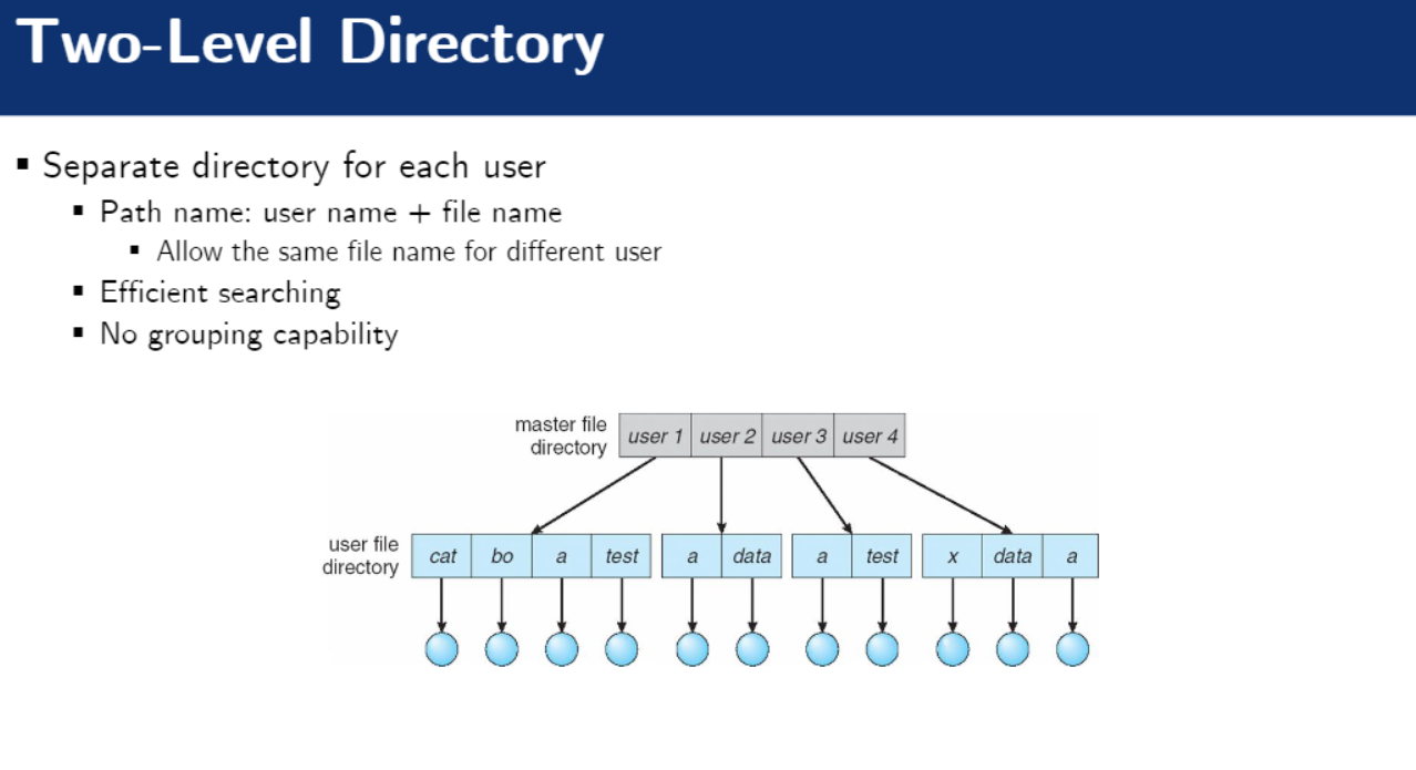 - 유저 당 하나의 directory만 가지므로 그룹화는 불가능함