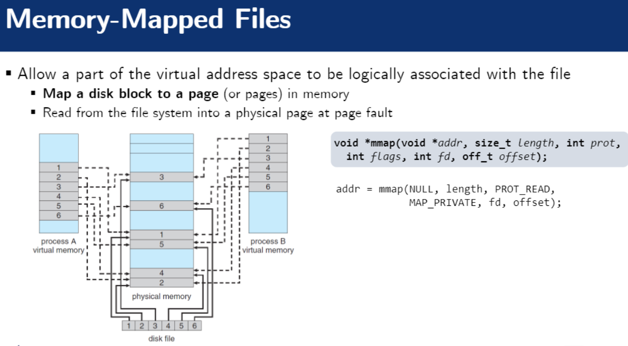 Memory-mapped files는 운영체제에서 지원하는 기능으로 파일을 가상 메모리 공간에 매핑하여, 파일을 메모리에 로드하거나 메모리에서 파일로 저장하는 과정을 줄여주며, 데이터를 효과적으로 처리할 수 있다.