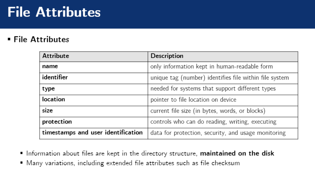 파일들에 대한 정보는 directory structure에 있고, directory structure은 disk 내에 존재한다.