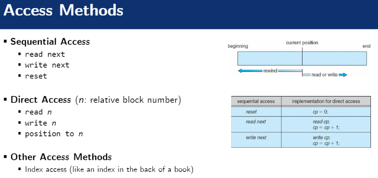 sequential access - 데이터를 순차적으로 접근하는 방식으로 일렬로 나열된 데이터를 처음부터 순서대로 접근하면서 데이터를 읽거나 씀