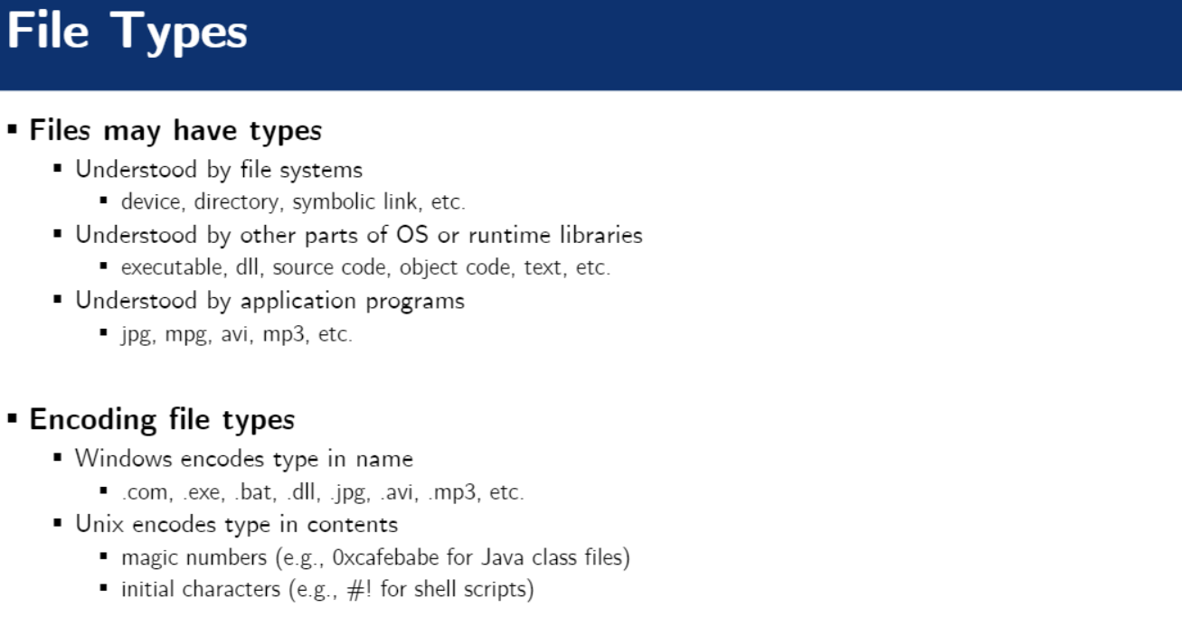 위 그림은 Unix/Linux에서 사용하는 system call들이다. Creat과 Open은 'fd'라는 integer을 리턴하는데 이는 프로세서에서 연 파일들을 구별해주는 역할을 한다.