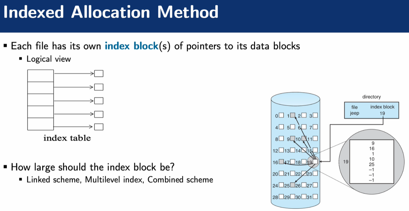 - 각 파일의 logical block은 0부터 N까지 숫자가 매겨진다.