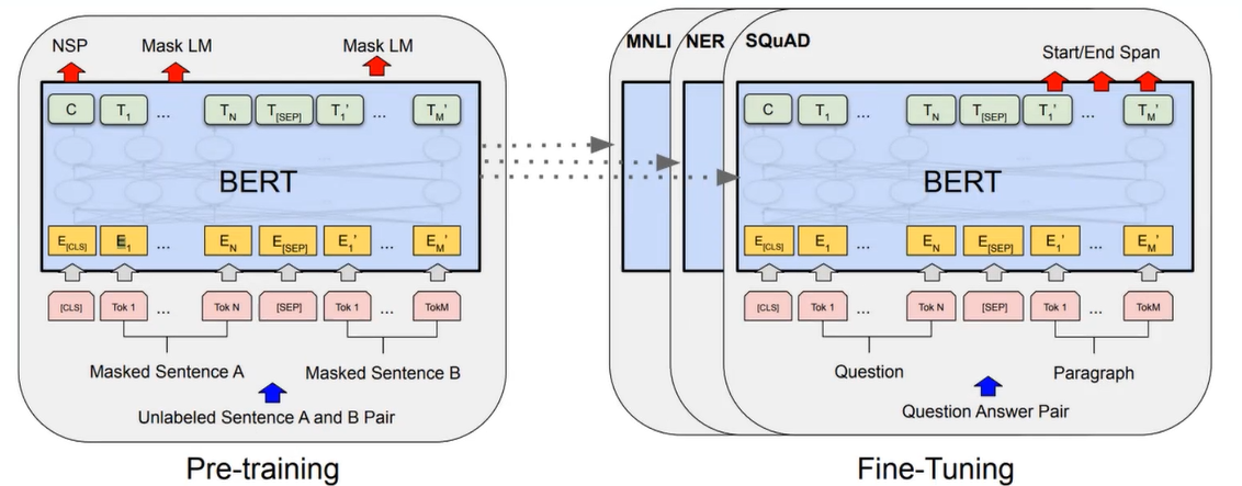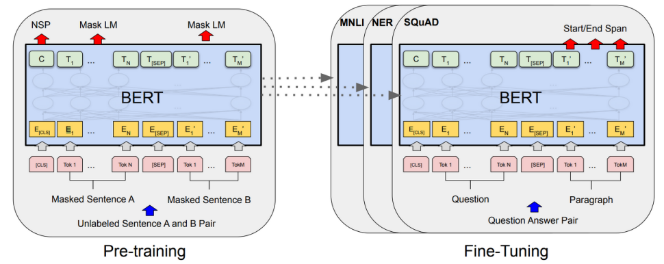 Pre-training 단계에서 BERT는 두 가지 학습 방식을 동시에 사용하는데, Masked Language Model(MLM)과 Next Sentence Prediction(NSP)가 바로 그것이다.