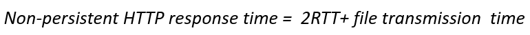 영구적이지 않은 HTTP(Non-Persistent HTTP) 응답 시간은 웹 객체당 다음 세 가지 요소의 합으로 계산될 수 있다: