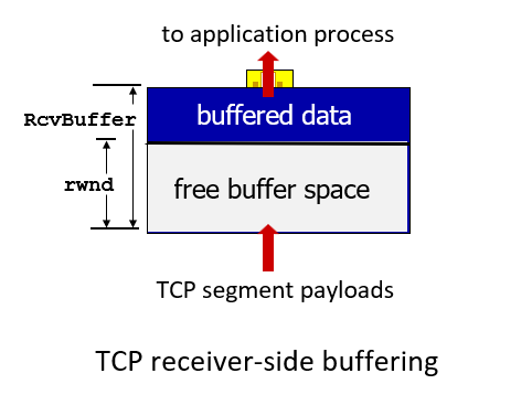 TCP 수신자는 TCP 헤더의 rwnd 필드를 통해 사용 가능한 버퍼 공간을 "광고"한다. rwnd는 수신 윈도우(Receive Window)를 나타내며, 수신자가 현재 수신하고 처리할 수 있는 데이터의 양을 나타낸다.