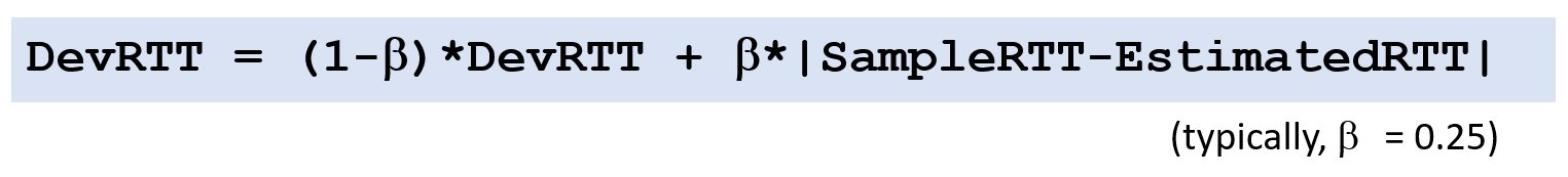 - DevRTT: 이는 Estimated RTT와 실제로 측정된 SampleRTT 사이의 편차(deviation)을 나타낸다.