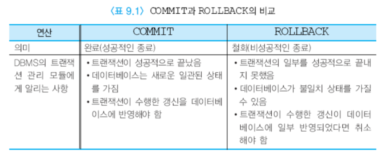 - 지속성(Durability): 일단 한 트랜잭션이 완료되면 이 트랜잭션이 갱신한 것은 그 후에 시스템에 고장이 발생하더라도 손실되지 않음