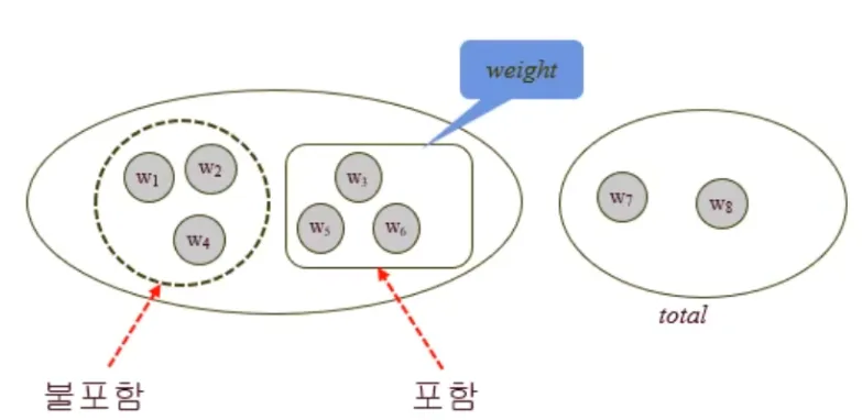- weight: 현재까지 선택한 원소들의 무게 합