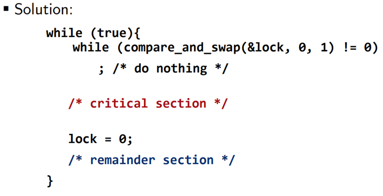 - Atomic instruction은 하드웨어 적인 영역이라 프로그래머가 다룰 수 없음