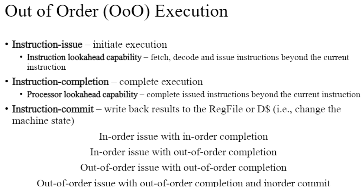 ALU에 순서대로 들어가지만 연산은 순서대로 끝날 필요 없는 방식이다.