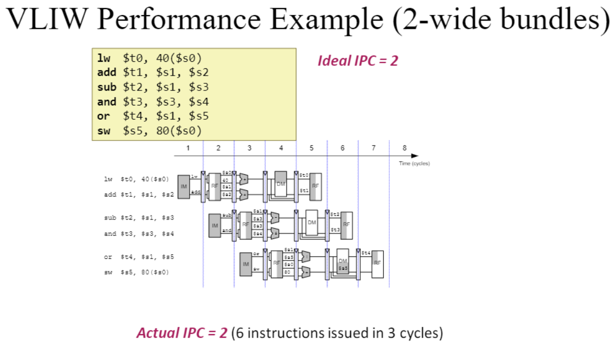 아래 그림은 pipeline stage가 3개이고 2개의 명령어씩 실행시키는 프로세서의 예시이다.